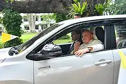 Indonesian President Joko Widodo met with Pope Francis shortly before Pope Francis met the congregation.[88] Joko Widodo was accompanied by a number of officials, including Coordinating Minister Luhut Binsar Panjaitan, National Police Chief Listyo Sigit Prabowo, and TNI Commander Agus Subiyanto.[89] Pope Francis then travelled around to meet the congregation at the Madya Stadium, before later greeting the congregation at the Gelora Bung Karno Main Stadium. While travelling around, Pope Francis used a Maung car made by Pindad, which was named Maung MV3 Popemobile.[90] While the Pope was travelling around, the congregation chanted Viva Il Papa and Viva Papa Francesco, as well as the song Kristus Jaya[91] (Victorious of Christ) and the song Ave-Ave (Di Lourdes di Gua) (Ave-Ave (In The Cave of Lourdes)).[92] Before the mass, the congregation prepared themselves through a silentium which created silence at the mass location.[93]