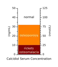 Mapping of several bone diseases onto levels of vitamin D (calcidiol) in the blood[6]