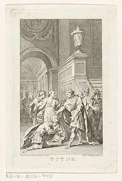 Vitellia is a central character in Mozart's La clemenza di Tito, where a dramatic account of her life has her attempt to assassinate Titus, after he declares his love for the Jewish princess Berenice.[9] The opera is set in 79.[10]
