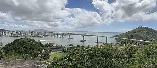 The Deputy Darcy Castelo de Mendonça Bridge, also known as the Third Bridge (Portuguese: Terceira Ponte), is the second tallest bridge in Brazil, connecting and reducing the distance between the cities of Vila Velha and Vitória.