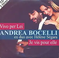 "Vivo per lei" (Italian pronunciation: [ˈviːvo per ˈlɛi]; English: "I Live for Her") is a 1995 song recorded by Italian artist Andrea Bocelli as a duet with Italian singer Giorgia, released on his album Bocelli. The song was also released as a duet with other female artists, including Marta Sánchez in Spanish and Latin American countries; Hélène Ségara in francophone countries; Judy Weiss in German-speaking countries; Sandy in Brazilian Portuguese;[1] and Bonnie Tyler in English under the title "Live for Love", though due to record company disputes their version was never released. The English version of the song was performed with Heather Headley and was released on Bocelli's live album Vivere Live in Tuscany.