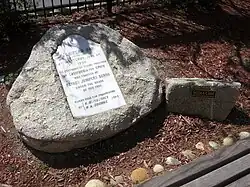 In 1908, a granite Celtic cross with a bas-relief portrait of Serra sculpted by Douglas Tilden was erected near the original site of the tree by the art collector James A. Murray and is now a California Historical Landmark.[6][7] Murray, who had made his fortune in the Montana mining industry, settled in Monterey in 1904. He took a keen interest in Monterey's history and owned one of the three paintings by Léon Trousset depicting Serra's first Mass beneath the oak tree. Murray's wife commissioned "The Passing of an Oak", a poem by Mary Sullivan Spence commemorating the tree. It was published in a limited edition in 1909.[8]