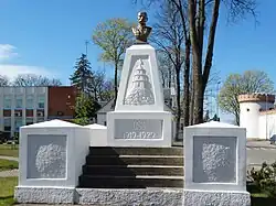 Monument to Putvinskis was erected in Tauragė in 1930 (it was rebuilt in 1990).[10] Sculptor Bernardas Bučas created a bust of Putvinskis in 1933–1934. This bust was placed in the garden of the Vytautas the Great War Museum in 1938. It was destroyed by the Soviets, but recreated in 1990.[60] In the same garden, a monument with names of 100 most prominent Lithuanian book smugglers (including Putvinskis) was unveiled in 1940. This monument was destroyed in 1990 and rebuilt in 1997.[60] A medal dedicated to Putvinskis was sculpted by Petras Rimša in 1939.[60] Another monument to Putvinskis was unveiled in 2019 in Kelmė.[10]