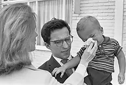 The couple moved to Iceland in 1968 where, in 1972, Ashkenazy became an Icelandic citizen.[15] In 1970 he helped to found the Reykjavík Arts Festival, of which he remains Honorary President.[16][17] In 1978 the couple and their (then) four children (Vladimir Stefan, Nadia Liza, Dimitri Thor, and Sonia Edda) moved to Lucerne, Switzerland. Their fifth child, Alexandra Inga, was born in 1979. Beginning in 1989, Ashkenazy resided in Meggen, Switzerland, on Lake Lucerne.[18] His eldest son Vladimir, who uses his nickname 'Vovka' as a stage name, is a pianist, as well as a teacher at the Imola International Piano Academy. His second son, Dimitri, is a clarinetist.