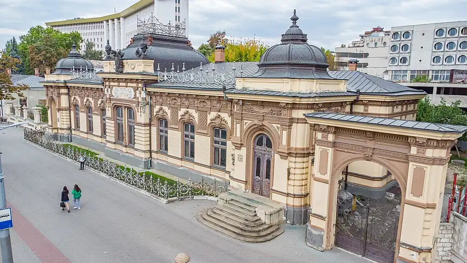 At Kishinev, Herța bought himself the Balș Orphanage on Alexandrovskaya Avenue, demolished it in 1903, and had it rebuilt as a Baroque Revival villa by 1905.[15] It was designed by a team of architects that included Heinrich Lonski of Austria-Hungary, and was considered one of Kishinev's most beautiful buildings, as well as a center for functions involving high society.[16] Herța had a political role in the Russian Revolution of 1905, as it unfolded regionally. In October, his new home became an informal headquarters for the liberal faction of the Kishinev zemstvo, which soon became a chapter of the Constitutional Democratic Party.[11] As a member of that group, Mayor Leopold Siținski made a half-joking proposal that Herța be proclaimed a Hospodar, or Prince, over the entirety of Bessarabia.[11] Herța encouraged the growth of a progressive movement, giving his blessing to the appearance of Ion Pelivan's Romanian-language paper, called Basarabia.[17] Ahead of the legislative elections in March 1906, Bessarabia's intellectuals split into factions. The radicalized youth, which cultivated Romanian nationalism and democratic ideals, recognized Pelivan as its informal leader. The conservative group, formed around Pavel Dicescu, supported education in Romanian, but was skeptical of other nationalist goals; its affiliates included Herța, Paul Gore, and Teodor Suruceanu. Their failure to embrace a common agenda hurt their chances in the election, and as a result all Bessarabian seats in the State Duma went to Russians and Russophiles.[18]