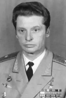 Vladimir Sergeyevich Ilyushin (Russian: Владимир Серге́евич Ильюшин; 31 March 1927 – 1 March 2010) was a Russian military officer and a test pilot in the former Soviet space program.[1] Ilyushin was a son of the famous aviation designer Sergey Ilyushin, and whose career was mostly as a test pilot for the Sukhoi OKB (a rival of Ilyushin OKB). After retiring from the space program, Ilyushin became a sports administrator and was inducted into the World Rugby Hall of Fame (then known as the IRB Hall of Fame) in 2013.[2]