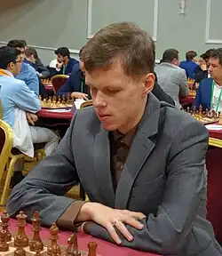 In February 2018, he participated in the Aeroflot Open. He finished sixth out of ninety-two,[22] scoring 6/9 (+4–1=4), thus becoming a 2700+ rated player for the first time in his career.[23] In December, he won the European Blitz Championship in Skopje with a score of 18½/22 points, one-and-a-half points ahead of runner-up Ivan Cheparinov.[24] In October 2018, He won both Russian Blitz Championship as well as the Russian Rapid Championship.[25]