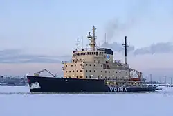 Voima is a Finnish state-owned icebreaker. Built by Wärtsilä Hietalahti shipyard in Helsinki in 1954, she was the first icebreaker in the world to be equipped with two bow propellers[5][6][7] and generated widespread publicity that helped the Finnish shipbuilding industry to become the world leader in icebreaker design.