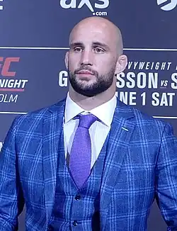 Volkan Oezdemir (born 19 September 1989) is a Swiss professional mixed martial artist and former kickboxer.[9] He currently competes in the Light heavyweight division of the Ultimate Fighting Championship (UFC). A professional since 2010, Oezdemir formerly competed for Bellator. As a kickboxer, he competed for Superkombat Fighting Championship in their heavyweight division. As of 26 November 2024, he is #9 in the UFC light heavyweight rankings.[10]