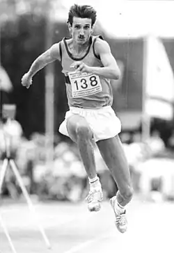 Nationally, he was a four-time East German Indoor triple jump champion (1984, 1985, 1987, 1989) and a two-time East German outdoor champion (1984, 1988).[6] Following German reunification he was the German indoor champion in 1991, 1993 and 1995, and took his sole German outdoor title in 1994.[7][8] In addition to his ten national titles in the triple jump, he was the 1989 East German champion in the long jump.[9]