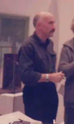 By the time Stelzmann was grown up the slaughter of war and subsequent large-scale emigration from East Germany had left the country increasingly short of working-age population and after 1961 the government created an increasingly sophisticated set of systems and controls to prevent its remaining citizens from escaping. Travel privileges based on his artistic status nevertheless gave Stolzmann the opportunity to "escape" in 1986 when he returned from an exhibition in Oberhausen (in West Germany) not to the German Democratic Republic but to the enclave of West Berlin which was outside the control of the East German government. Remaining in the west, between 1987 and 1988 he held a guest professorship at the Städelschule (fine arts academy) in Frankfurt am Main. In 1988 he was appointed Professor for Painting at the Berlin Fine Arts Academy (as it was then called).[1] This prompted a protest from the painter Georg Baselitz who now resigned his own teaching position at the university, condemning Stelzmann as a "party-line East German artist".[3][4] (Baselitz, like Stelzmann, had begun his artistic career in the German Democratic Republic, although he had made his own "escape to the west", after falling foul of the country's political rulers, back in 1958.) Stelzmann retained his professorship at the Berlin University of the Arts (as the Fine Arts Academy had by now become) till 2006.[2]