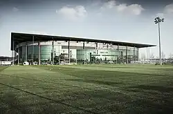 In 2008, the Volkswagen Arena saw a record attendance.[28] In the same year, a three-storey fan building was built to the northwest of the stadium.[29] In the following year, a number of changes were made in and around the stadium,[30] for example the construction of new training grounds in 2009 and the refurbishment of the box seats, among others, in 2012.[31][32] The largest expansion in the immediate vicinity of the Volkswagen Arena began in 2013,[33] when the 5,000-capacity AOK Stadium was built next to the arena.[34] This is now used by teams such as the VfL Wolfsburg women's and youth teams.[35] The VfL Center, a new three-storey training centre for the professional football players, was also built.[36] It was initially criticised by some fans.[37]