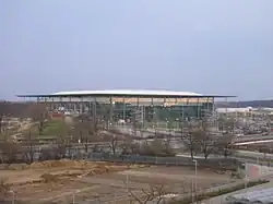 Volkswagen Arena (German pronunciation: [ˈfɔlksvaːɡn̩ ʔaˌʁeːnaː]; also known as the VfL Wolfsburg Arena due to UEFA sponsorship regulations) is a football stadium in the German city of Wolfsburg, Lower Saxony.[5] It was opened in 2002 and named after the automotive group Volkswagen AG.[6][7] The Volkswagen Arena has a capacity of 30,000: 22,000 seats and 8,000 standing places.[3] It is located in the Allerpark and is the home stadium of the football team VfL Wolfsburg.[8]