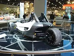 The Volkswagen GX3 was a concept car created by project Moonraker, which was initiated by Stefan Liske, former director of group product strategy at Volkswagen. The GX3 was first shown at the 2006 Greater Los Angeles Auto Show. It was considered an unusual concept, since it was three-wheeled and sometimes considered more of a motorcycle rather than a car, but it did feature good performance for a projected cost of only about US$17,000.