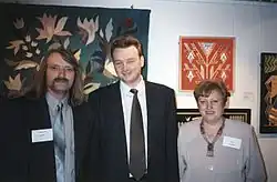 Visiting artists from Ukraine — Volodymyr Harbuz (left) and Nina Sayenko (right) together with Australian politician David Borger (center) at an art exhibition organised by the Ukrainian Artists Society of Australia at the Parramatta Heritage Centre gallery in April 2000.