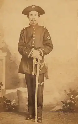 Contrary to the National Guard, whose force, controlled by the local elites, was reluctant to go to war, there was great patriotic enthusiasm among the common people to fill the ranks of the corps of Voluntários da Pátria.[11] The volunteers comprised a broad spectrum of social classes.[12] After the enlistment of ten thousand volunteers, the government deemed it was enough and suspended recruitment in the National Guard. In the province of Bahia, the number of volunteers was such that the government ordered the refusal of new ones, but struggled to enforce it due to the pressure exerted by the volunteers.[13] Some volunteers saw the financial benefits offered by the government as a way of improving their condition while others spontaneously gave up the benefits, proving their true volunteer intentions.[14]