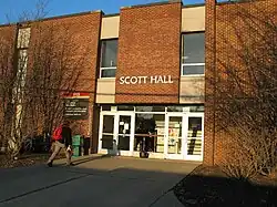 Named for Austin Scott (1848–1922), the tenth President of Rutgers University and a history and political science professor, Scott Hall is a modern structure built in 1963. It is used as one of the campus's major classroom buildings, along with Murray Hall, Hardenbergh Hall, Frelinghuysen Hall, and Campbell Hall. The building's large auditorium classrooms are often used for movies, plays, and other gatherings as well as classes.