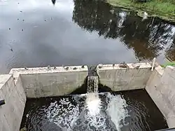 The length of the river is 12 km.[1] The natural watercourse has been significantly changed by melioration.