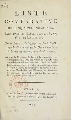 - ^ Trapp, Joseph (1793). Proceedings of the French National Convention on the Trial of Louis XVI. London. p. 174. Retrieved 20 January 2025.