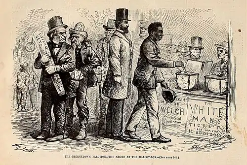 African Americans were a majority in three Southern states following the Civil War, and represented over 40% of the population in four other states and many whites feared and resented the political power exercised by freedmen.[68] After ousting the Republicans, whites worked to restore white supremacy.
