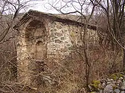 - Church of St Nicholas. It is situated at 2 km to the south of the village in a deep and hardly accessed dingle. It is a small one nave and one apse church without narthex and with a shallow arc on the western facade. Its dimensions are 4,43 x 2,75 m. The vault is semi-cylindrical. It was built of stones and white plaster. The roof is covered with stone plates. The church is half-dig in the ground. The whole interior and the arc on the western facade are painted but only fragments of the frescoes have remained. The church was constructed and painted in the 16th century. It is a monument of culture.