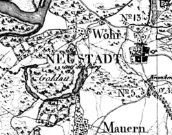 The settlement of Wöhr is between Neustadt and the Danube riverbank,[1] and is actually older than Neustadt. Wöhr was incorporated in the late Middle Ages as part of the city of Neustadt and residents of Wöhr could be citizens of the city, but lived outside the fortification.