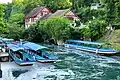 A bridge was leading from the righthand shore of the Rhine river into the ring the walled courtyard. On the north side a palace-like building was built, whose third floor consisted of a cantilevered clerestory timber. In 1621, a stone floor replaced the clerestory. New floors were added, new windows broken, and the ring wall and gate was broken. As of today it houses the restaurant Schlössli Wörth that claims to be a gourmet restaurant, and also a gift shop and a fast food joint, connected with a terrace and a brilliant view of the Rhine Falls.[2] Wörth is also the starting point of the tour boats.
