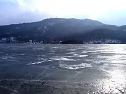 In winter the lake sometimes freezes.