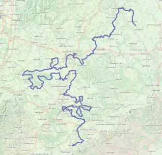 The 511-kilometre-long tourist road begins in the north in Weikersheim[1] and leads through the Württemberg wine-growing regions on the banks of the Tauber, Kocher rivers,[2] Jagst, Neckar, Sulm, Lein, Zaber, Schozach, Bottwar and Rems to the seven-press town of Metzingen in the south.