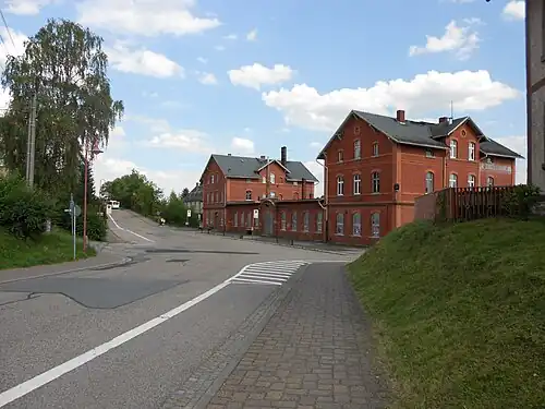 Wüstenbrand station is a station on the Dresden–Werdau railway in the south west of the German State of Saxony. In the past, it was a terminus for the secondary lines to Limbach-Oberfrohna and Neuoelsnitz. Currently, it serves as a through station.
