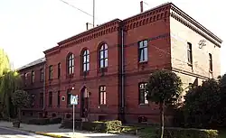 Wąbrzeźno was invaded by Nazi Germany in September 1939, during World War II, and was occupied by Germany until 1945. The Germans carried out mass arrests of Poles in October 1939.[7] Around 1,000 Poles were arrested and imprisoned, mostly in a temporary concentration camp, established in a local factory, but some also in the local prison.[8] Some of these Poles were murdered in Skrwilno between October 15 and November 15, 1939, and in Nielub on October 17, 1939,[9] while most were murdered in large massacres in Łopatki and Kurkocin (see Intelligenzaktion).[3] Nearly 4,000 Polish residents of Wąbrzeźno and the surrounding communities were sent to Nazi concentration camps, established in Potulice and Toruń,[10] and expelled.[3] The Germans banned the use of the Polish language, liquidated Polish schools and organizations, and resettled the town with German colonists, however, the Poles still organized the underground Polish resistance movement.[3]