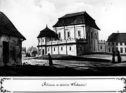 By the end of the 16th century, Włodawa passed into the hands of Andrzej Leszczyński and from that time belonged to the Leszczyński family for next generations.[6] As Leszczyński was a Calvinist, Włodawa soon became an important center of Protestantism. In 1624 a Calvinist church and a school were built here.[3] Between 1633 and 1648, the minister of the Calvinist congregation in Włodawa was Polish historian and poet Andrzej Węgierski.[3] In 1634 a Calvinist synod was held in Włodawa, which was attended by delegates from the entire Polish–Lithuanian Commonwealth.[3] Protestants from Bohemia, Moravia and Silesia also settled in Włodawa at that time.[6]