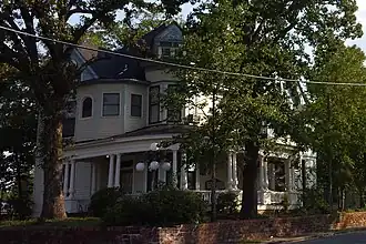 The W.H. Moore House is a historic house at 906 Malvern Street in Hot Springs, Arkansas. It is a 2+1⁄2-story wood-frame house, with a hip roof, weatherboard siding, and a brick foundation. It has asymmetrical massing typical of the Queen Anne period, including projecting gables and window bays, a wraparound porch, and a corner turret. The porch details, however, are distinctively Colonial Revival, with heavier clustered posts supporting its roof. The house was built in the late 19th century for W.H. Moore, owner of the Valley Planing Mill, the city's only business of that type.[2]
