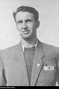 Wacław Kuźmicki (April 27, 1921 – August 19, 2013) was a Polish decathlete who competed at the 1948 Summer Olympics in London, where he finished 16th in a field of 35 competitors.[1][2] He was born in Osiedle Bacieczki, Białystok and attended the Warsaw School of Economics from 1945-1949. During that time he participated in the 1946 European Athletics Championships in Oslo, finishing 10th among 16 athletes, as well as the 1947 and 1949 editions of the World Student Games, winning the long jump event at the earlier tournament. By the time of his 1953 retirement he had been the Polish national pentathlon champion twice (1947 and 1950) and the national triple jump champion once (1947). Following his retirement from active competition, due to injuries, he took up coaching, working for several clubs as well as the national team. He also served as a judge for international athletic competitions and, for his service in this field, was made a member of the Order of Polonia Restituta, Knight's Cross. He was married to fellow athlete Irene Hejducka until her death in 2008 and lived in Katowice until his own death.[3] He was the last surviving member of the Polish delegation to the 1948 Summer Olympics.[4]