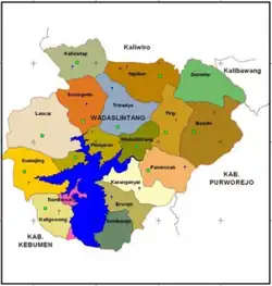 Wadaslintang District has 17 villages (16 rural desa and the urban kelurahan of Wadaslintang):[1]