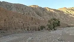 From Mayya, the Wadi Awsaq forms a deep gorge about 4 km (2.5 mi) long, which directs its channel towards the Sayh Muruq depression,[4][16] next to the city of Tawiyean, receiving the waters of Wadi Sadakh shortly before it flows into the Wadi Tawiyean.[3]