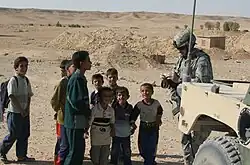 The landscape in this part of the Iraq desert is undulating and barren. The wadi flows from near the Jordanian border and traverses east through the Iraq desert till it meets the Euphrates near the town of Alaleya.[4] The wadi collects water from an area encompassing most of Anbar province,[5] and is at an elevation of 83 meters.[6]