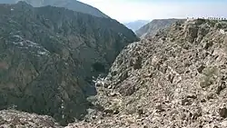The highest point is located at the eastern end, at the top of Jabal Harf (1,420 m (4,660 ft)),[4][5] on whose western slope the Wadi Baqal originates,[11][12] and other important tributaries and sub-tributaries of the Wadi Nahela.