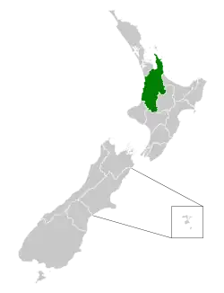 ![]() Location of the Waikato DHB (green) in New Zealand | |