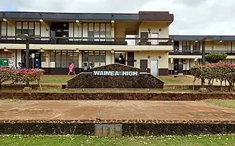 Waimea High School is a public high school in Waimea on the island of Kauaʻi in the state of Hawaii. It was established in 1881 and serves grades 9 through 12.[2] It is the westernmost high school in the United States of America.[3] The school mascot is the Menehune,[4] and the school colors are blue and white.[2]