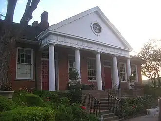 Waitman T. Willey House is a historic home located at Morgantown, Monongalia County, West Virginia. It was built in 1839–1840, and is a 1+1⁄2-story, L-shaped brick residence in the Classical Revival style. The front facade features a one-story pentastyle portico with five fluted wood Doric order columns and a high pitched triangular pediment. It was built for Waitman T. Willey (1811-1900), noted lawyer, orator, and statesman.[2]