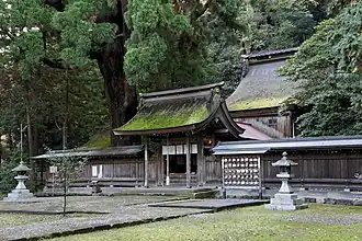 Wakasahiko Jinja (若狭彦神社) is a Shinto shrine in the city of Obama in Fukui Prefecture, Japan. It is the ichinomiya of former Wakasa Province. The main festivals of the shrine are held annually on October 10 and March 10.[1] The shrine is actually a twin shrine, consisting of the Wakasahiko Shrine (若狭彦神社, Wakasahiko jinja), or "upper shrine", and the Wakasahime Shrine (若狭姫神社, Wakasahime jinja), or "lower shrine". It is also sometimes referred to as the Onyu Myōjin (若狭彦神社)