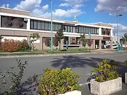 Wakayama Marina City is one of ten artificial islands in Wakaura Bay, a feature of the larger Osaka Bay. It was built from fill removed from a nearby mountain, and is disconnected from the coastline, except for two bridges to the mainland. There are also two saltwater canals crossing the island. Construction of the island began in April, 1989. It opened to the public in 1994.[3] Marina City was originally developed by Matsushita Investment and Development Company, Ltd. (MID) and Wakayama Prefecture.[4] It now supports a large marina, run by the Wakayama Marina City Yacht Club, the Wakayama Marina City Hotel (sometimes called the Royal Pines Hotel), the Kuroshio Ichiba (fish market), the Kuroshio Onsen (spa) and Porto Europa, a theme park created by MCA (Universal Studios).[5] At that time, both MID and MCA were owned by Matsushita Electric Industrial Company (MEI),[6] which has been rebranded to Panasonic since 2008.[7] MEI bought MCA in 1989.[8]