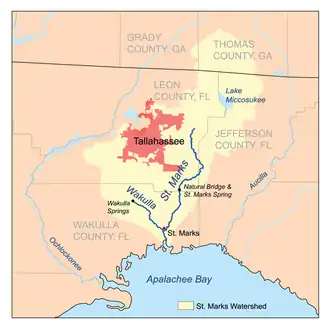 | Headwaters | 30°15′03″N 84°19′20″W / 30.25083°N 84.32222°W | |||