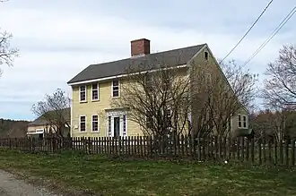 The Walcott-Whitney House is a historic late First Period house in Stow, Massachusetts. It is a 2+1⁄2-story timber-frame house, five bays wide, with a side gable roof, clapboard siding, and a large central chimney. A leanto extends to the rear, giving it a saltbox profile. The front facade is asymmetrical, with a roughly centered entrance that has a Federal period surround of sidelights, pilasters, and entablature with cornice. The house was built c. 1720–30, and is a well-preserved example of the period. It is particularly noted for its well-preserved front staircase.[2]
