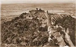 Waldenburg (German pronunciation: [ˈvaldn̩bʊʁk] ) is a hilltop town in south central Germany, eastwards of Heilbronn in the Hohenlohe (district) of Baden-Württemberg. The town is the site of Waldenburg Castle and some hilltop churches. Records first mention Waldenburg in the year 1253, but the town was destroyed in April 1945, at the end of World War II, and it has been rebuilt since.
