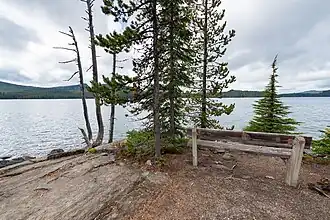 The lake is located in Lane County at an elevation of 5,414 feet (1,650 m) above sea level.[1] Access is via Forest Service Road 5897 from Oregon Route 58 approximately 18 miles (29 km) east of Oakridge. The forest road travels 12 miles (19 km) to the lake.