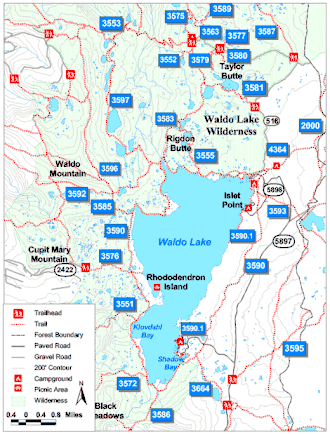 6. ^ "Waldo Lake Wilderness and Recreation Area". Forest Service Maps. U.S. Forest Service.