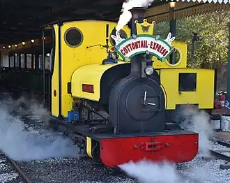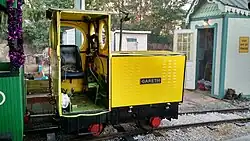 Gareth is a Simplex 40S[3] diesel locomotive built by British locomotive-building company Motor Rail in the mid 1960s.[2] The two thousand pound locomotive was purchased from Alan Keef Ltd for use in the construction of the Wales West Light Railway.[2] Gareth originally featured steam out-line body and had been used to pull a single car train in Scotland.[2] His new owners replaced the steam out-line body with a body modeled after the Simplex-type diesels produced by Alan Keef in the 1980s.[2]