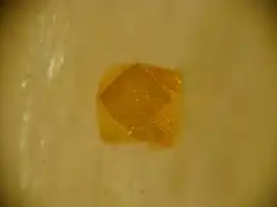 Walfordite is a very rare tellurite mineral that was discovered in Chile in 1999.[5] The mineral is described as orange with orange-yellow streak, and is determined to have a chemical formula of Fe3+,Te6+Te4+3O8[2] with minor titanium and magnesium substitution resulting in an approximate empirical formula of (Fe3+,Te6+,Ti4+,Mg)(Te4+)3O8.[5]